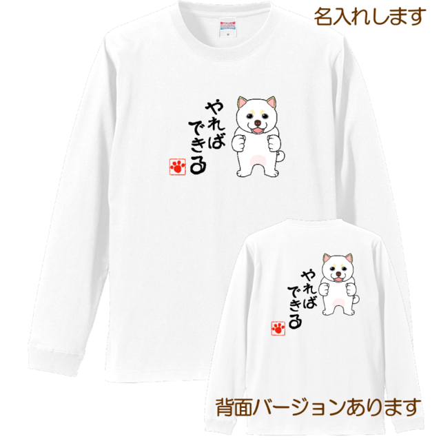 柴犬C 白柴 =Tシャツ・ロングスリーブ・3サイズ・名入れ可・やればできる・ホワイト・2025011=