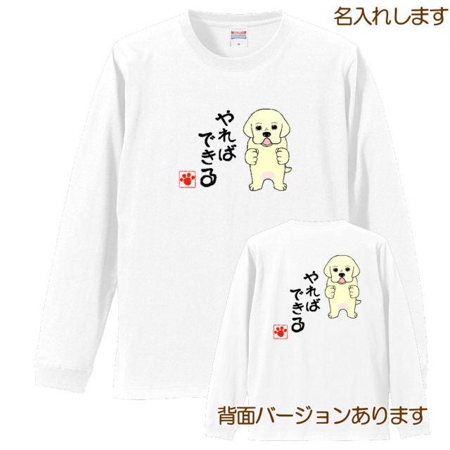 ラブラドールA =Tシャツ・ロングスリーブ・3サイズ・名入れ可・やればできる・ホワイト・2025011=