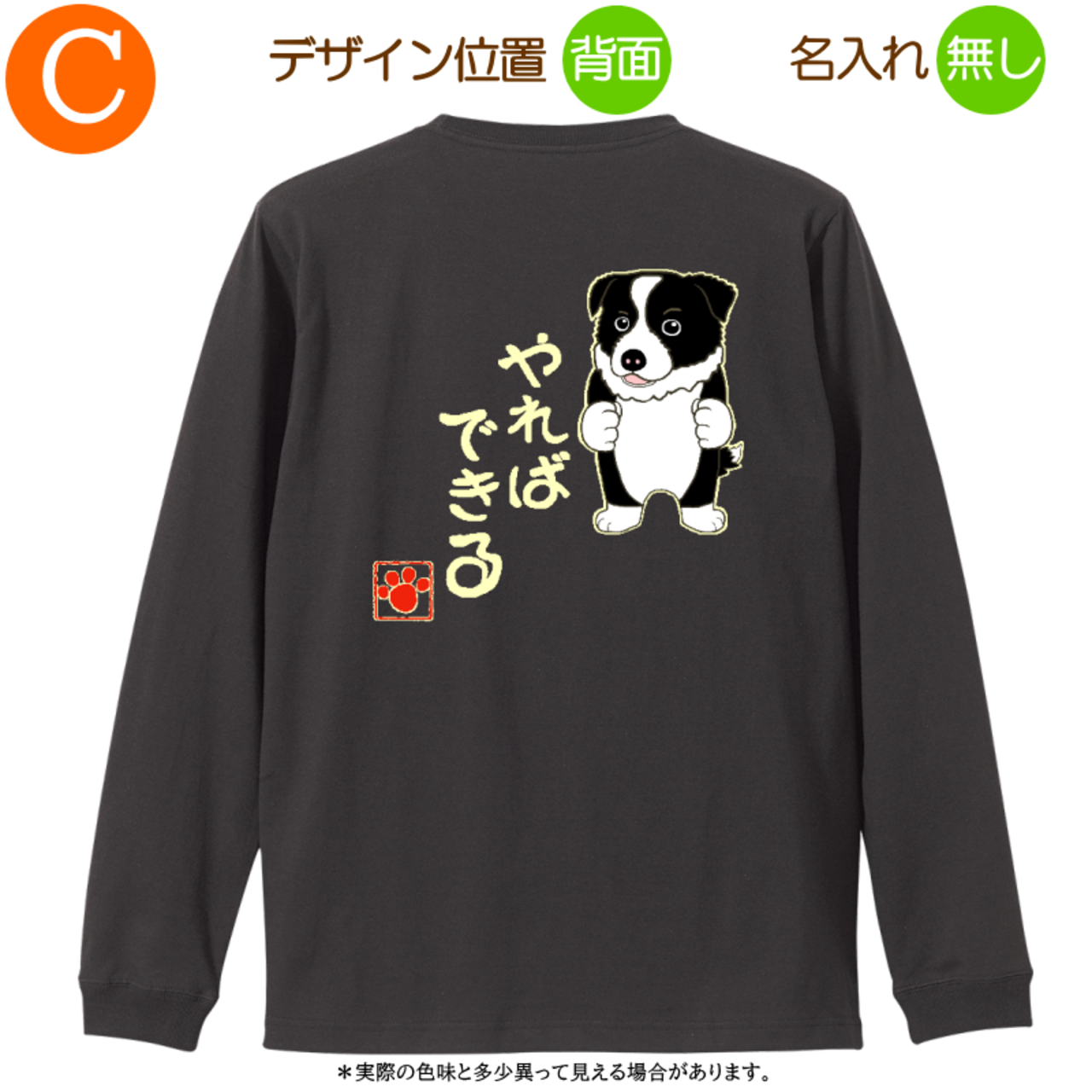 ボーダーコリーA =Tシャツ・ロングスリーブ・3サイズ・名入れ可・やればできる・スミ・2025011=