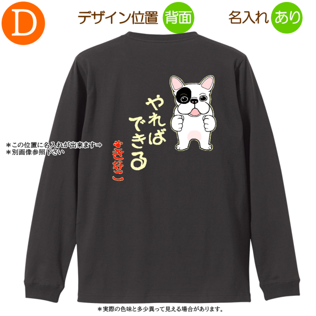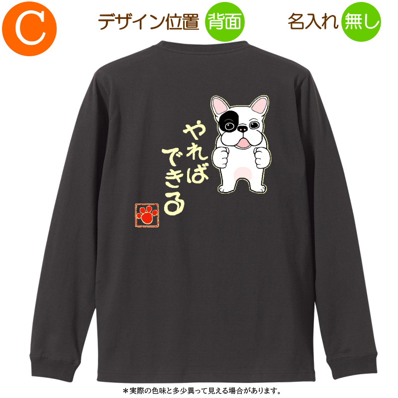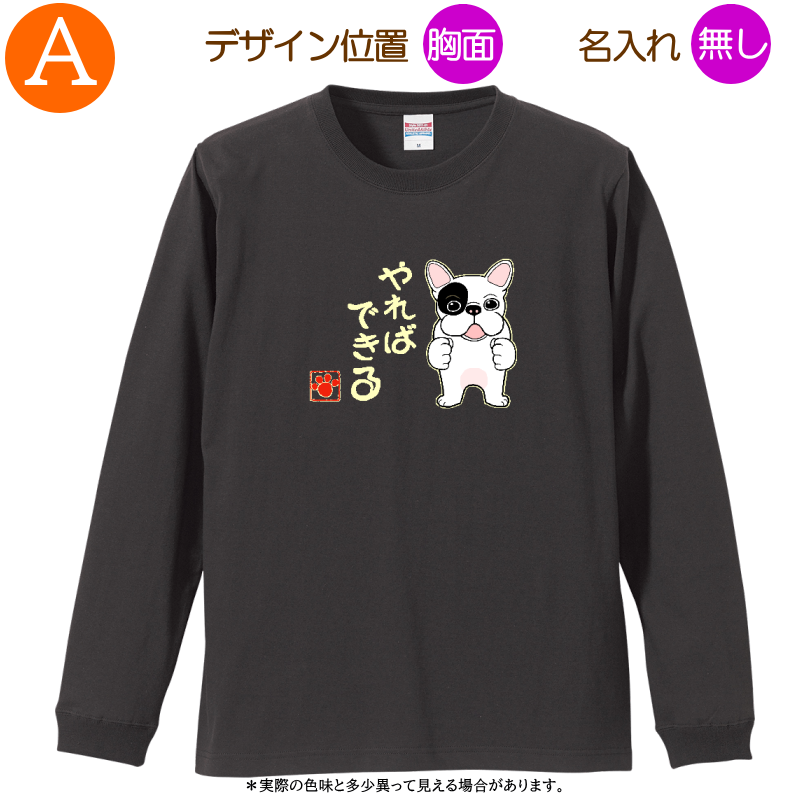 フレンチブルドッグB =Tシャツ・ロングスリーブ・3サイズ・名入れ可・やればできる・スミ・2025011=