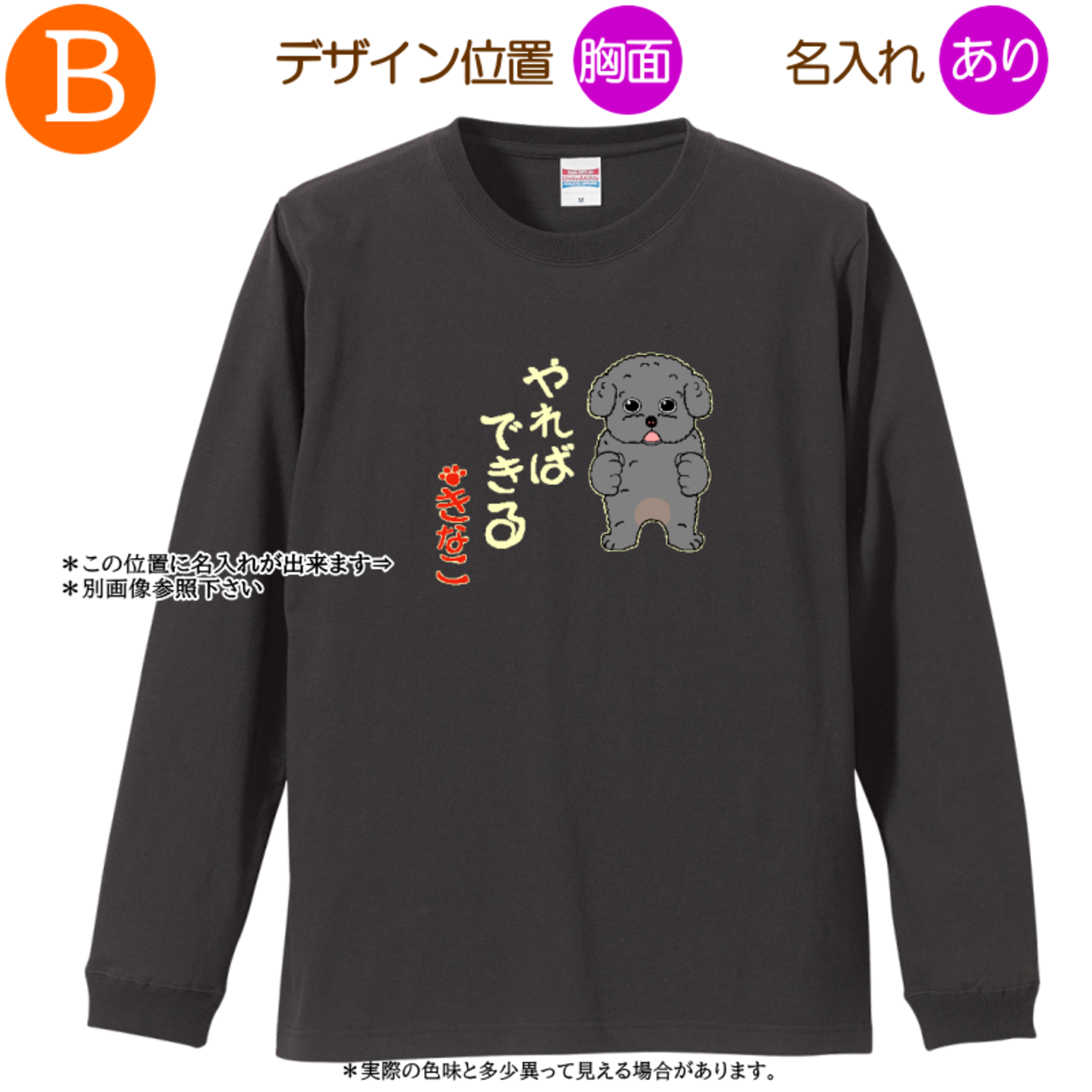 トイプードルC =Tシャツ・ロングスリーブ・3サイズ・名入れ可・やればできる・スミ・2025011=