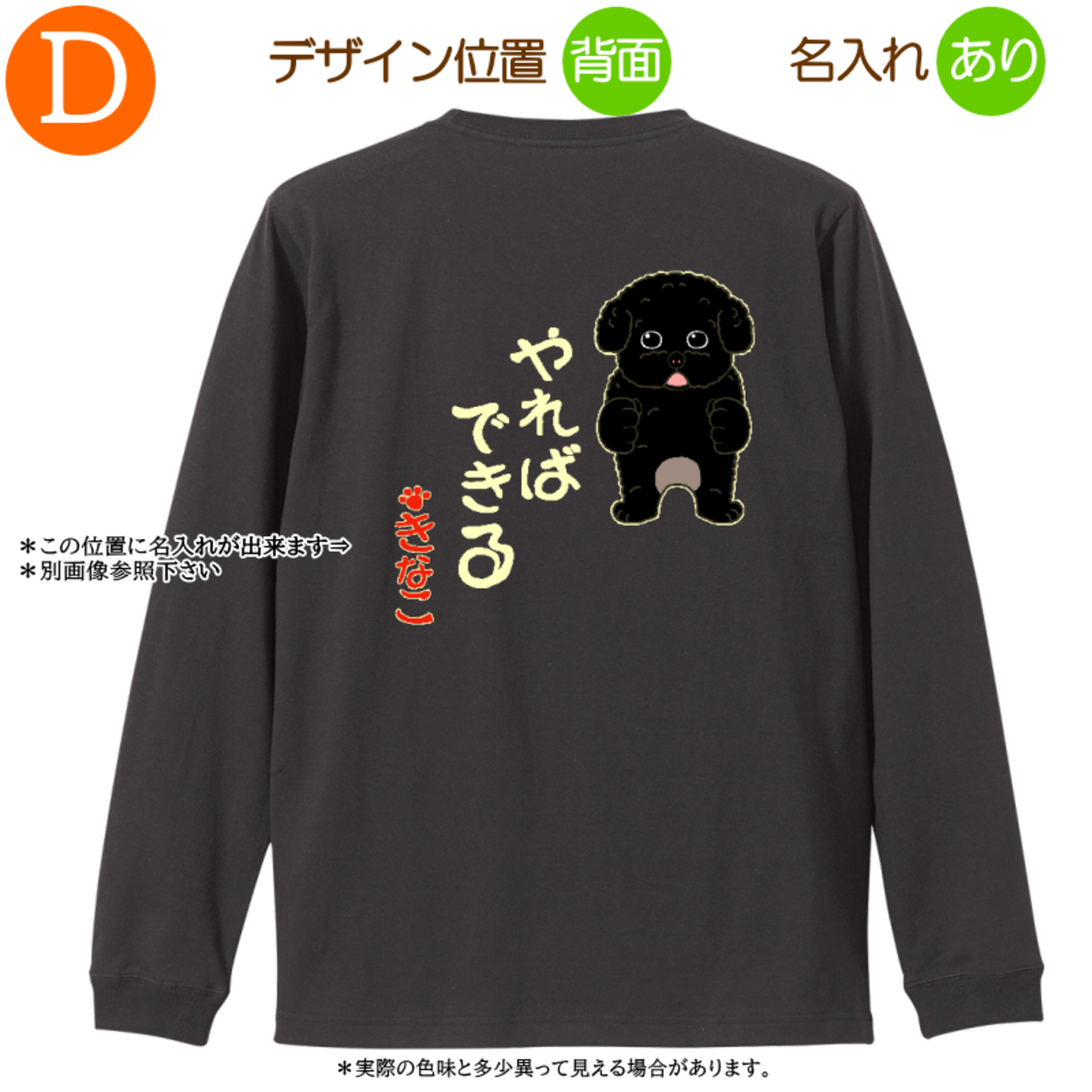 トイプードルD =Tシャツ・ロングスリーブ・3サイズ・名入れ可・やればできる・スミ・2025011=
