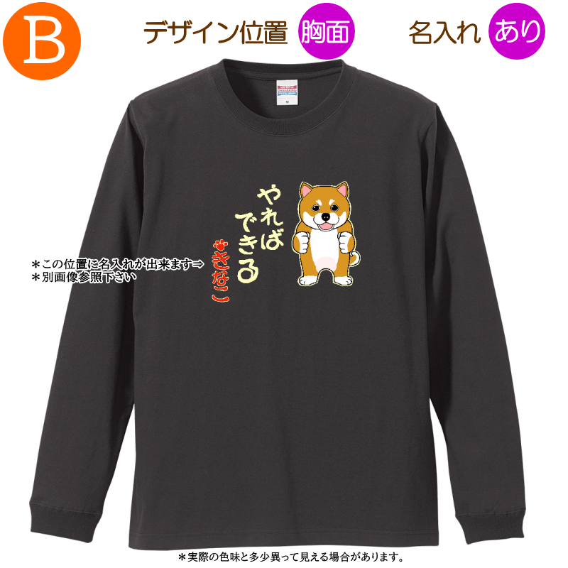 柴犬A =Tシャツ・ロングスリーブ・3サイズ・名入れ可・やればできる・スミ・2025011=