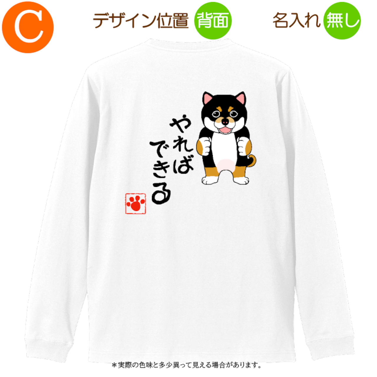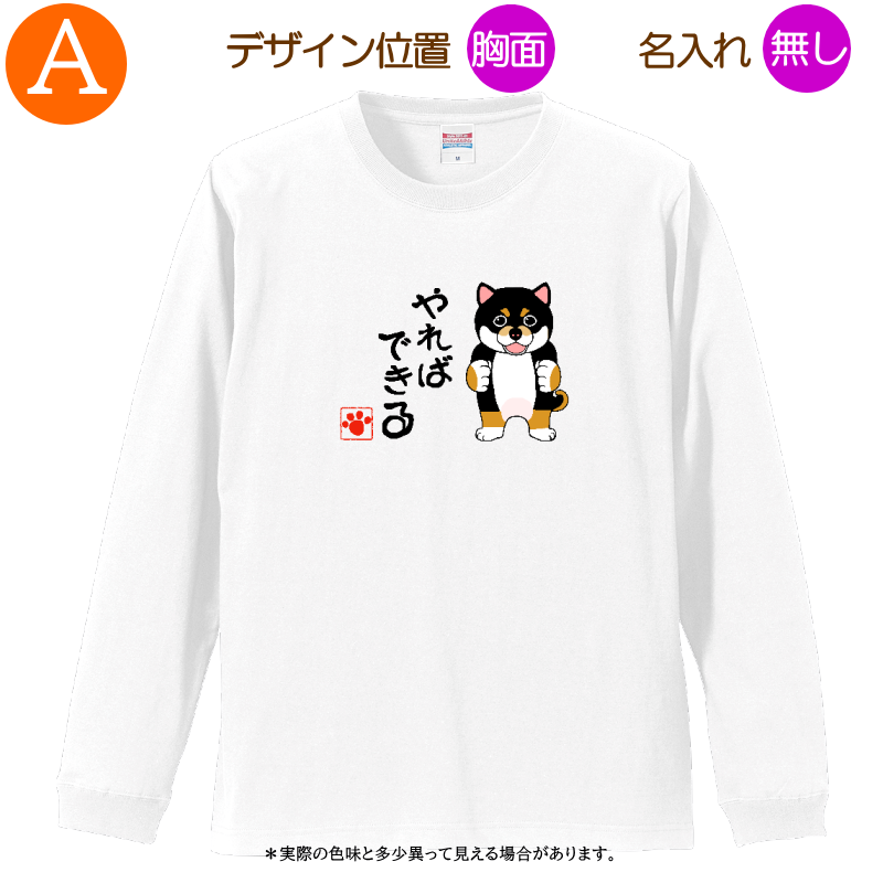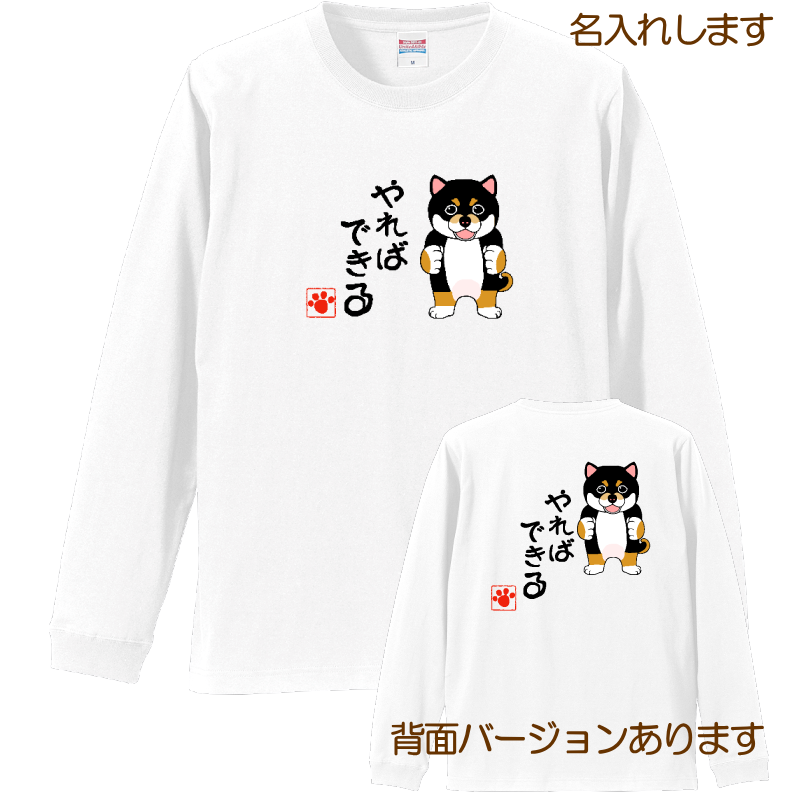 柴犬B 黒柴 =Tシャツ・ロングスリーブ・3サイズ・名入れ可・やればできる・ホワイト・2025011=