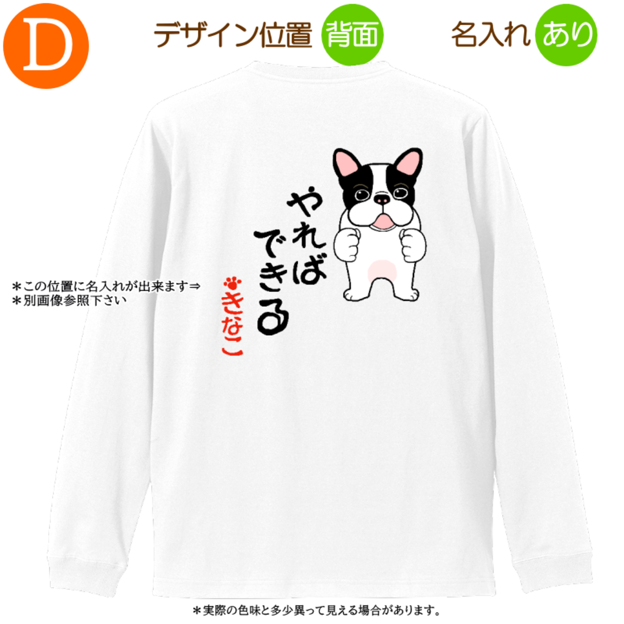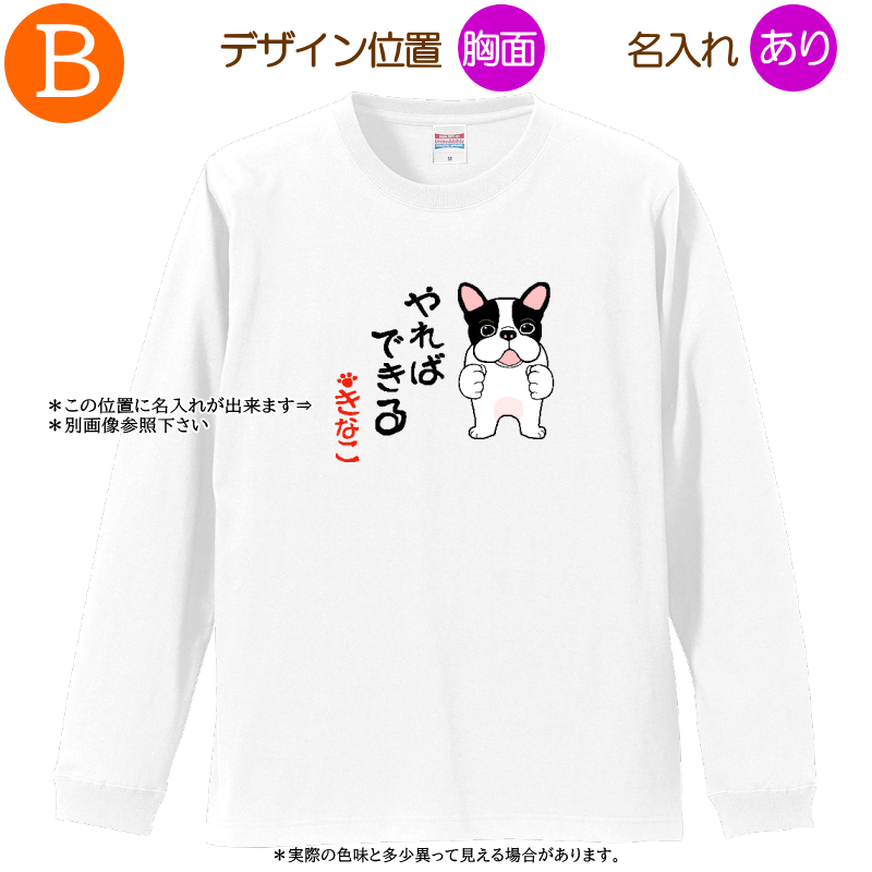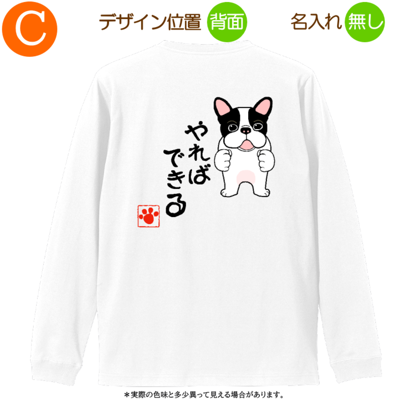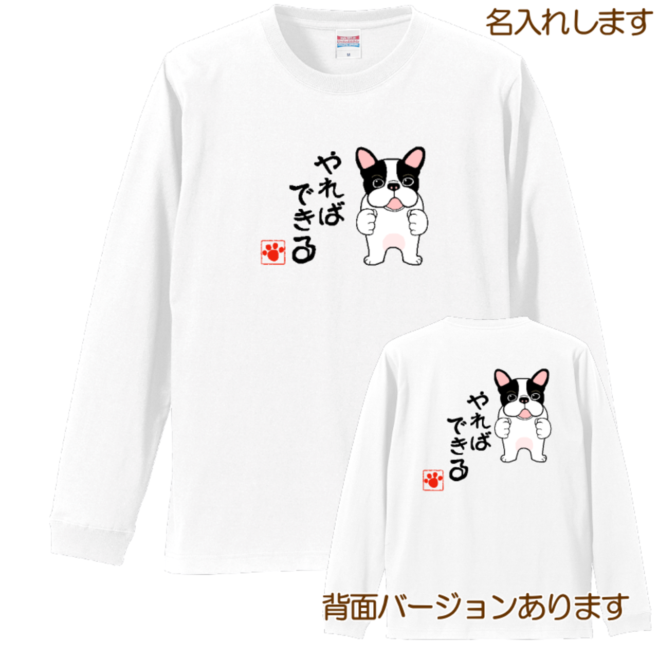 フレンチブルドッグA =Tシャツ・ロングスリーブ・3サイズ・名入れ可・やればできる・ホワイト・2025011=