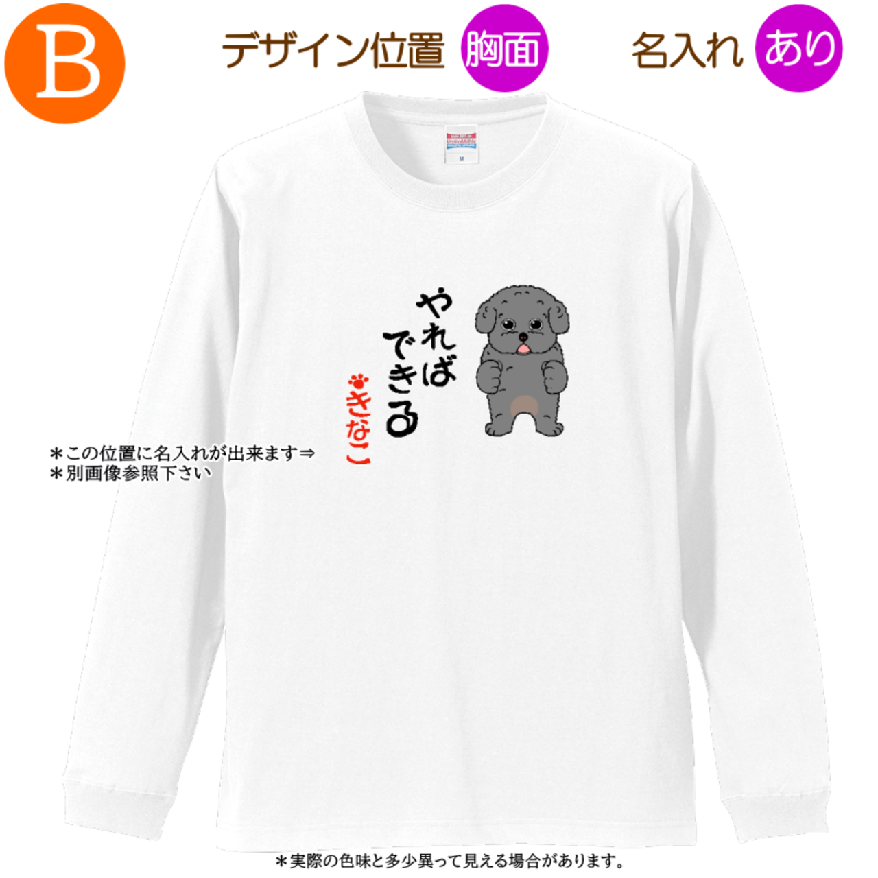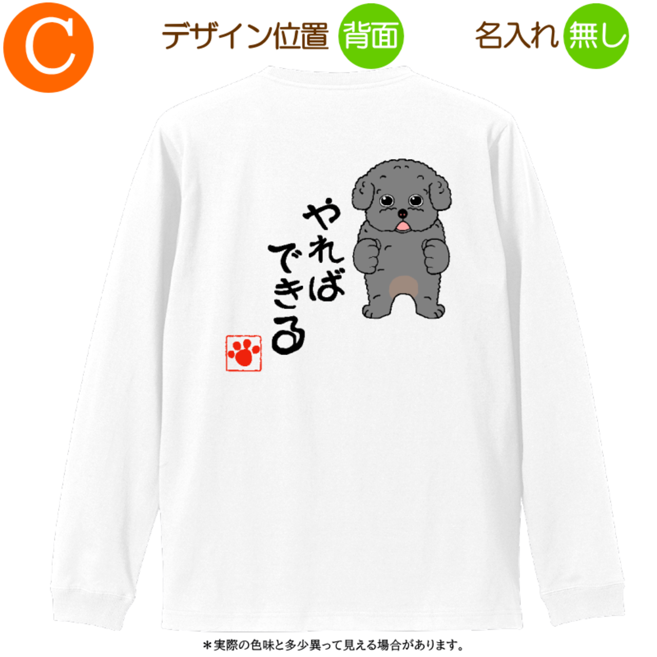 トイプードルC =Tシャツ・ロングスリーブ・3サイズ・名入れ可・やればできる・ホワイト・2025011=