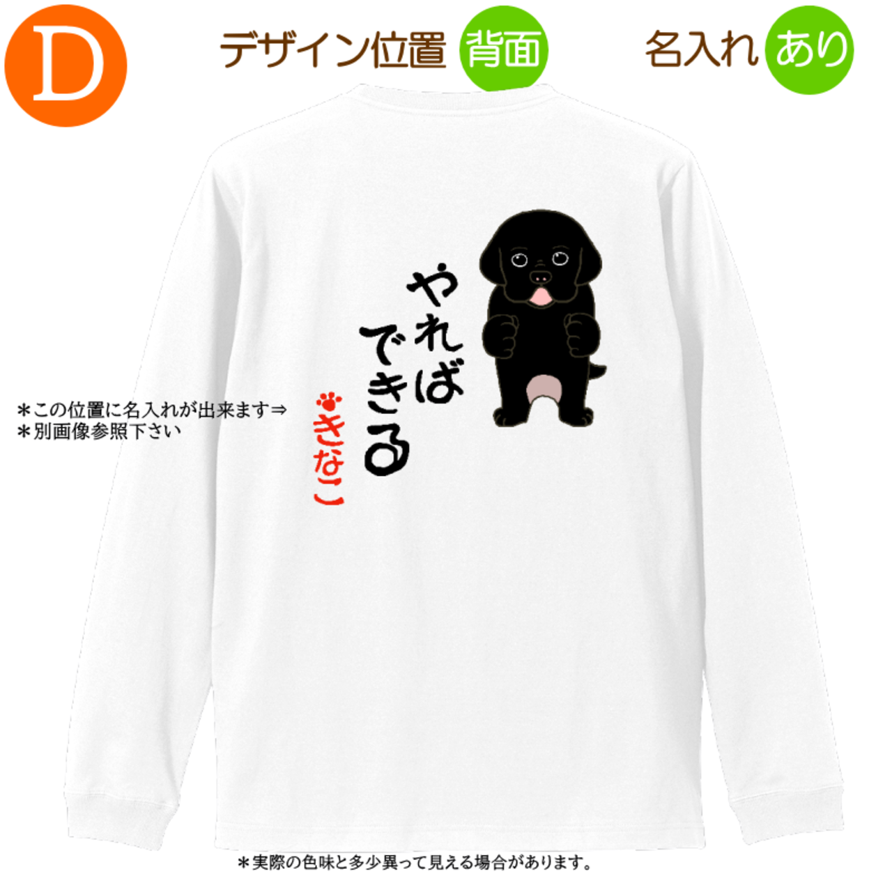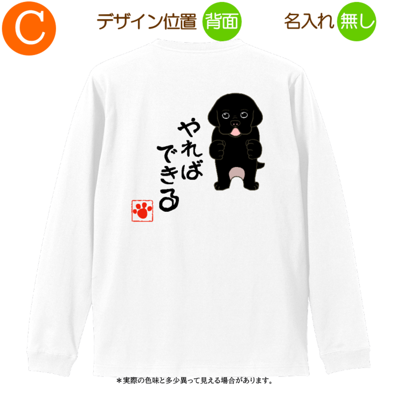 ラブラドールB =Tシャツ・ロングスリーブ・3サイズ・名入れ可・やればできる・ホワイト・2025011=