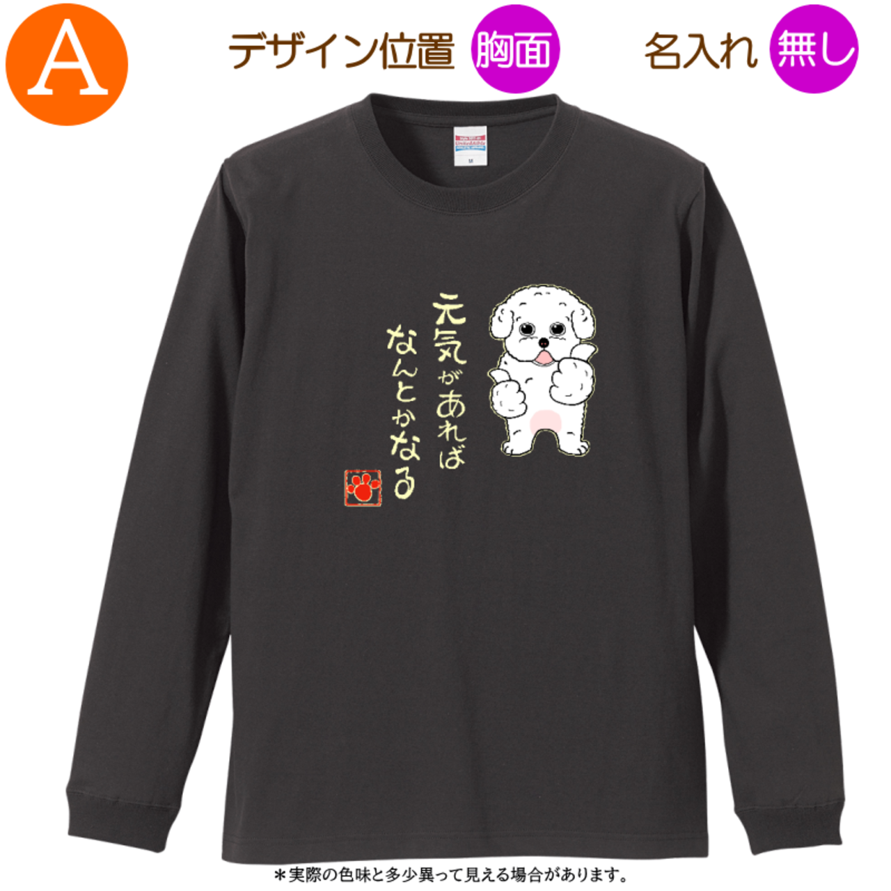 トイプードルA =Tシャツ・ロングスリーブ・3サイズ・名入れ可・元気があれば・スミ・2025011=