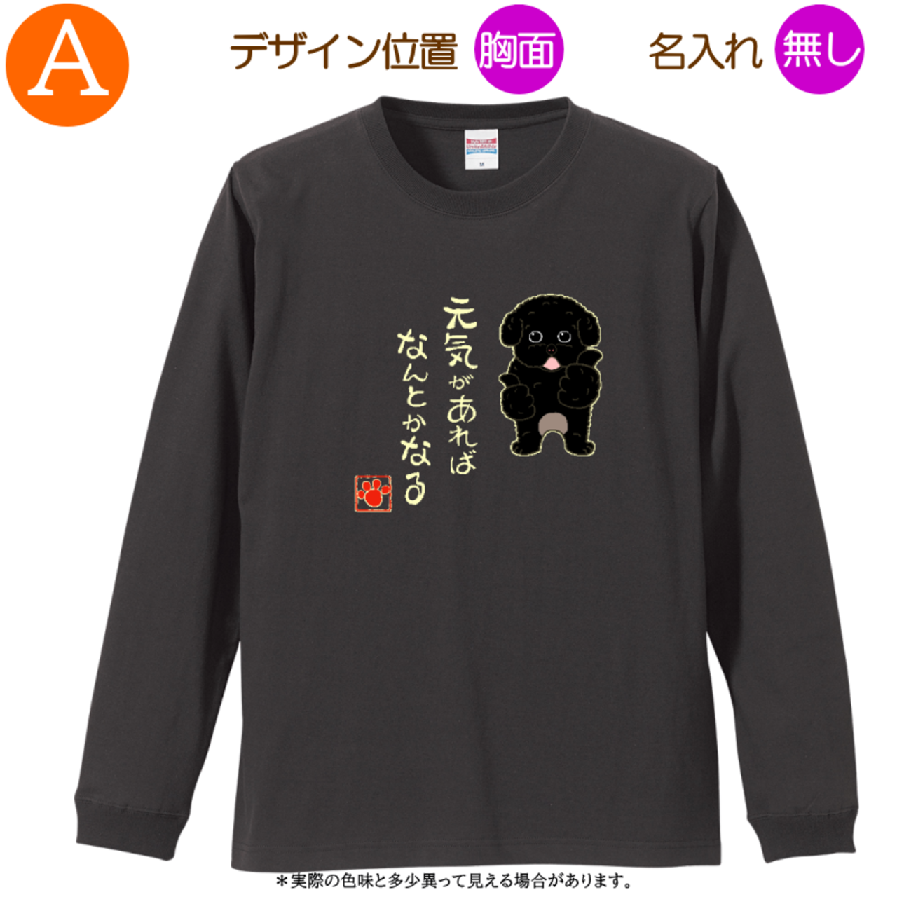 トイプードルD =Tシャツ・ロングスリーブ・3サイズ・名入れ可・元気があれば・スミ・2025011=