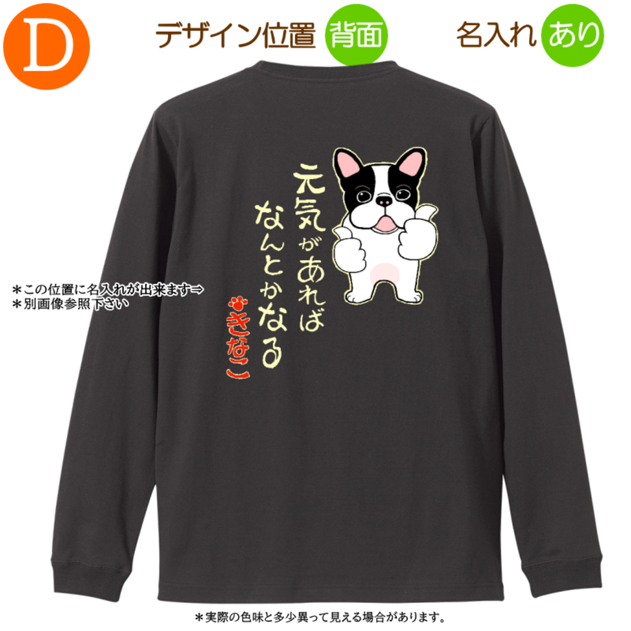 フレンチブルドッグA =Tシャツ・ロングスリーブ・3サイズ・名入れ可・元気があれば・スミ・2025011=