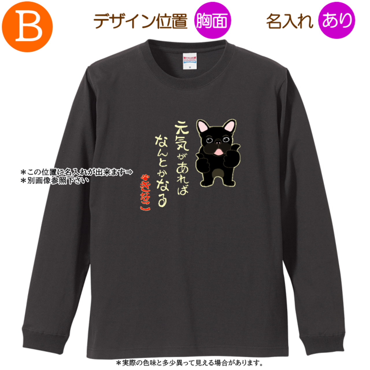 フレンチブルドッグC =Tシャツ・ロングスリーブ・3サイズ・名入れ可・元気があれば・スミ・2025011=