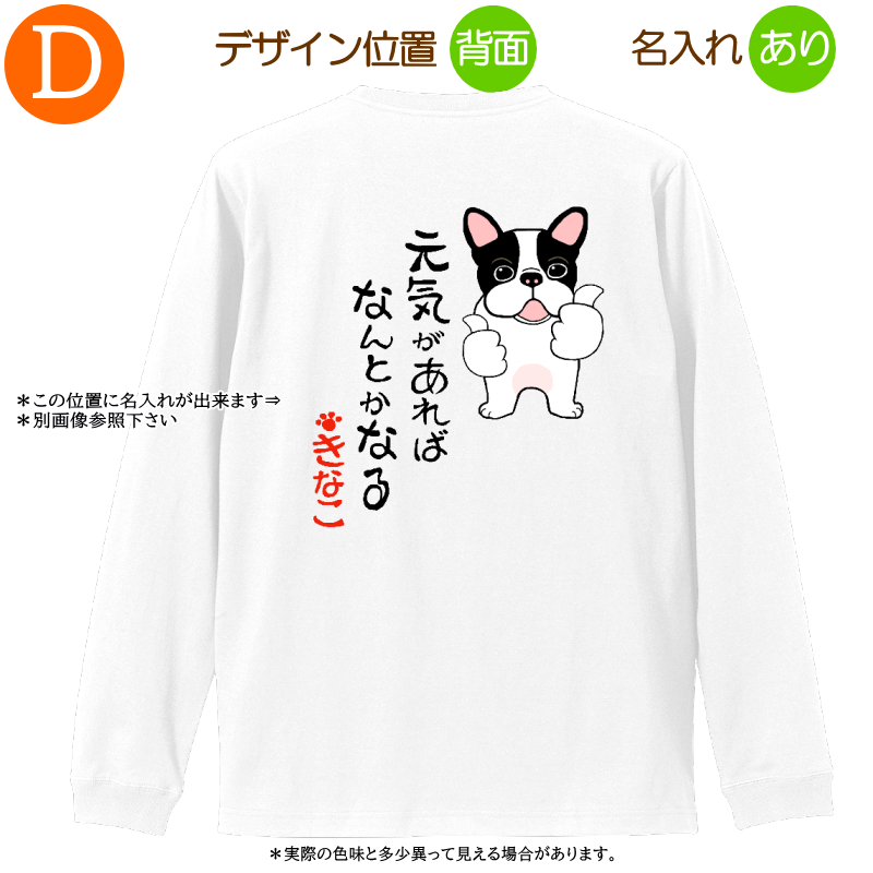 フレンチブルドッグA =Tシャツ・ロングスリーブ・3サイズ・名入れ可・元気があれば・ホワイト・2025011=
