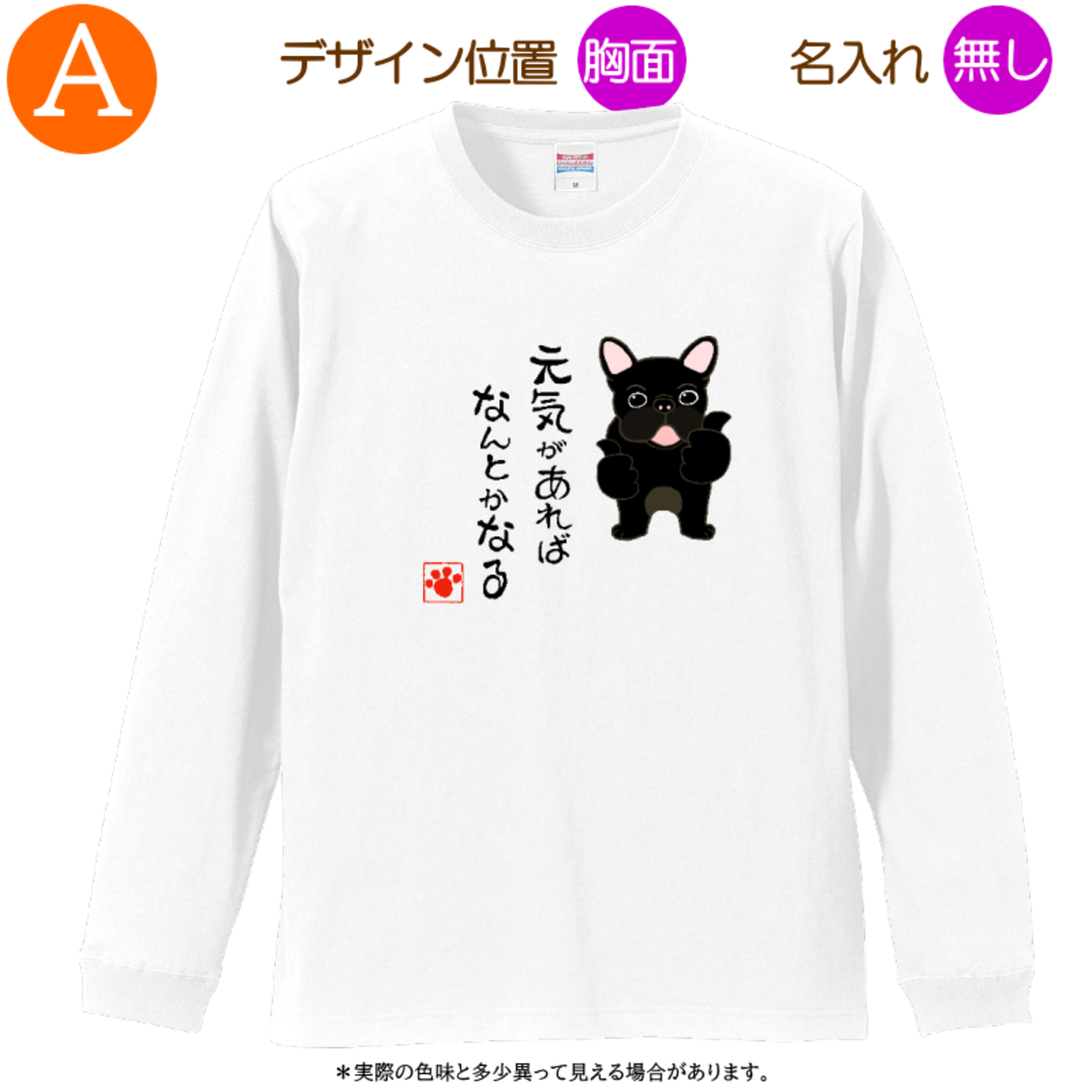 フレンチブルドッグC =Tシャツ・ロングスリーブ・3サイズ・名入れ可・元気があれば・ホワイト・2025011=