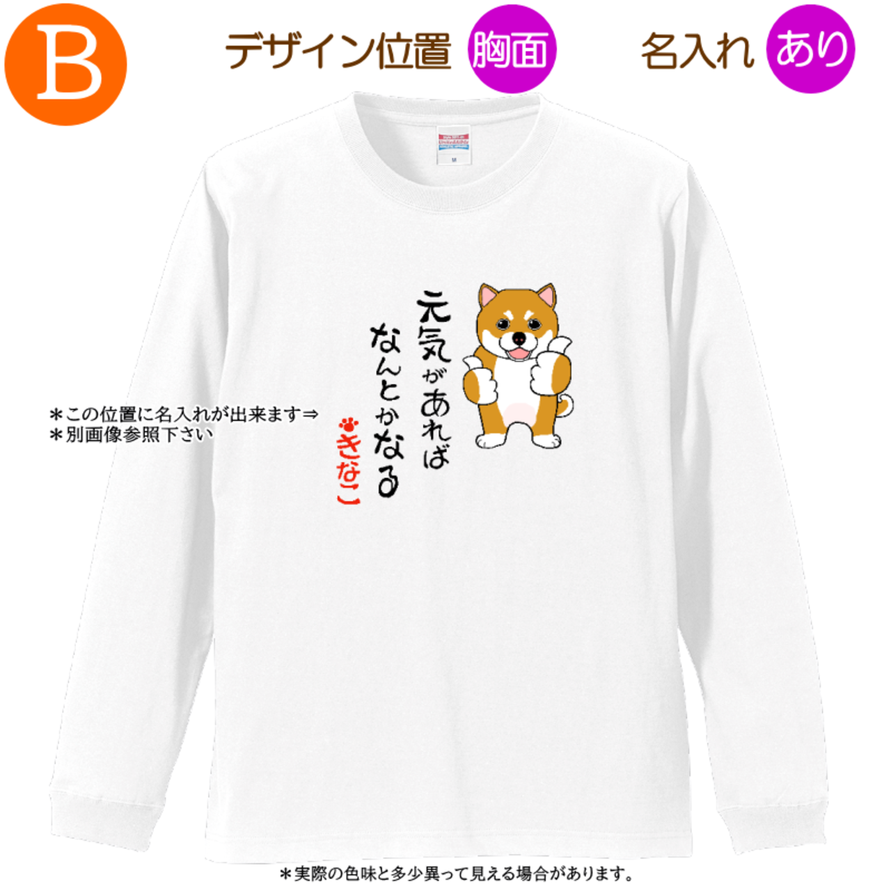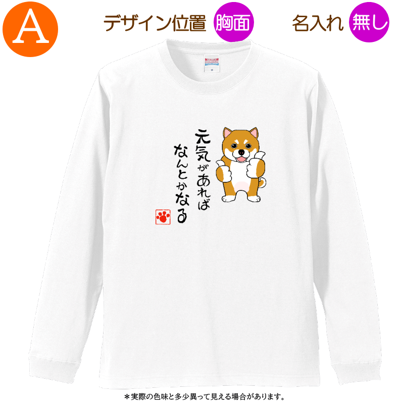 柴犬A =Tシャツ・ロングスリーブ・3サイズ・名入れ可・元気があれば・ホワイト・2025011=