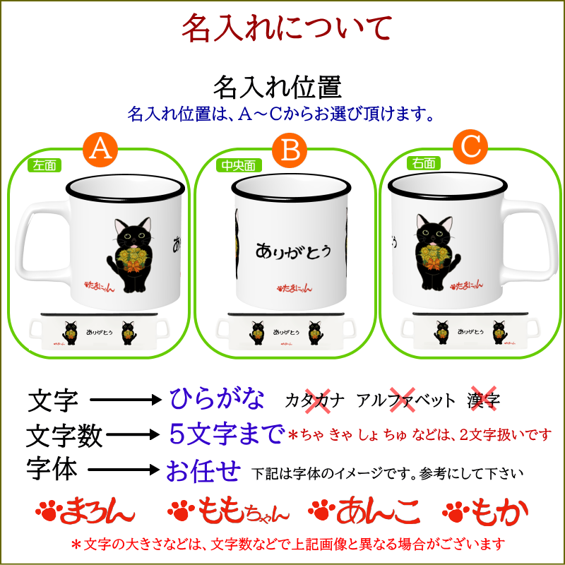猫C=父の日プレゼント 名入れメッセージ入れ マグカップ2=
