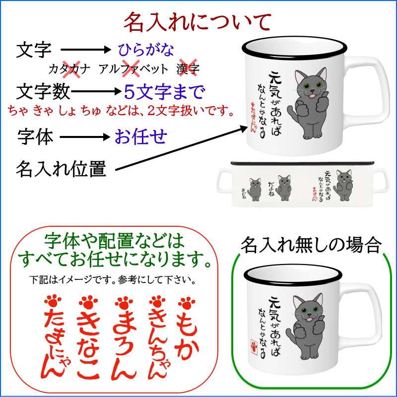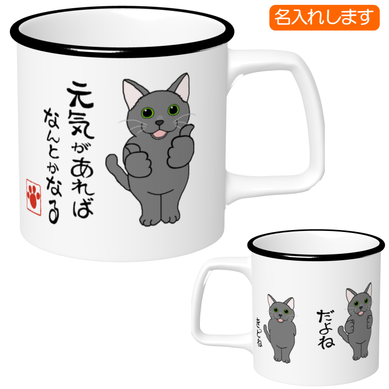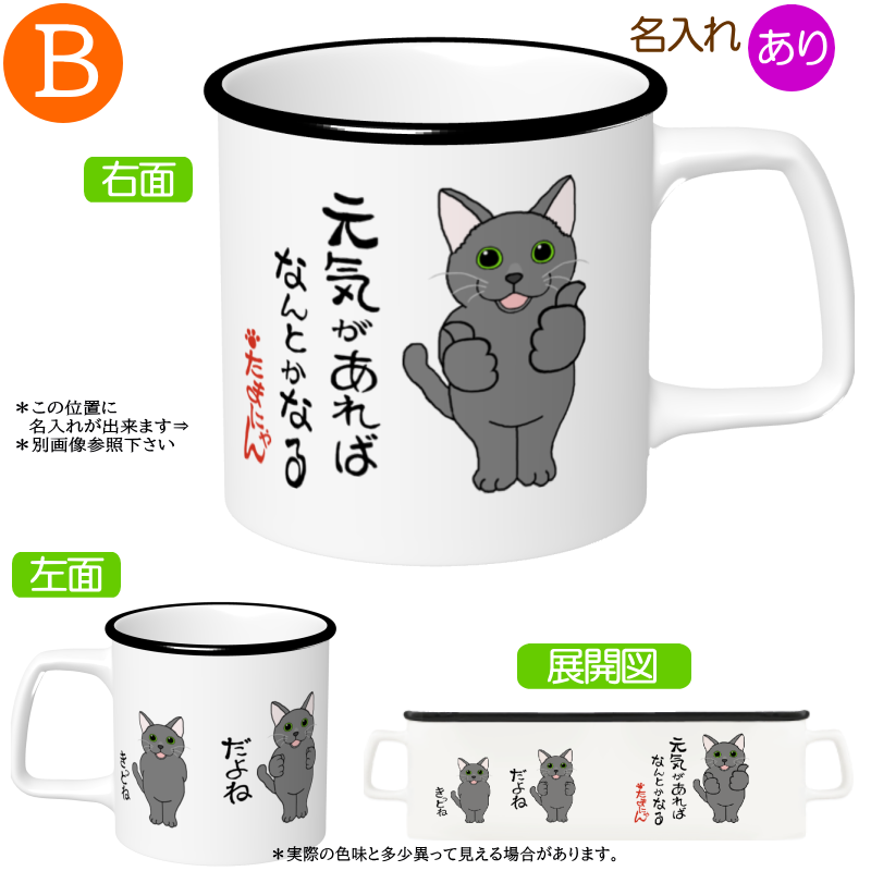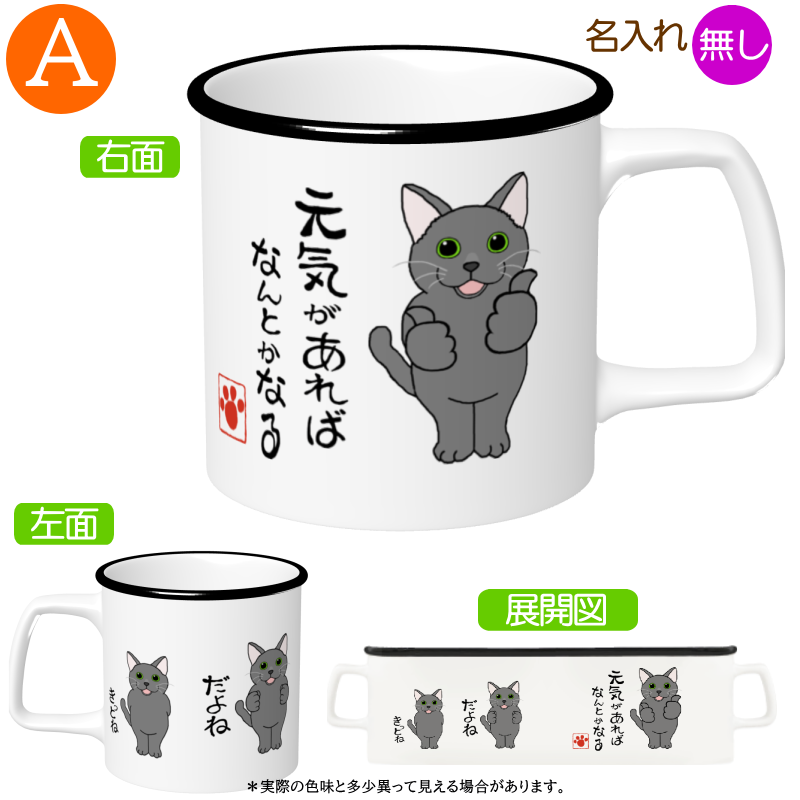 猫A=名入れメッセージ入れ 元気があれば マグカップ2=