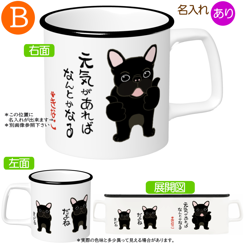 フレンチブルドッグC=名入れメッセージ入れ 元気があれば マグカップ2=