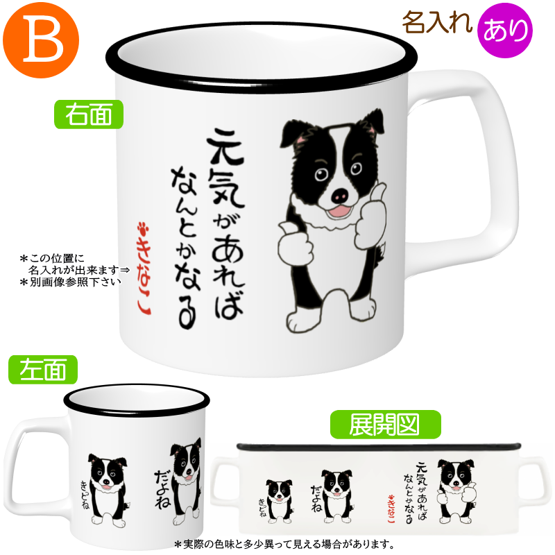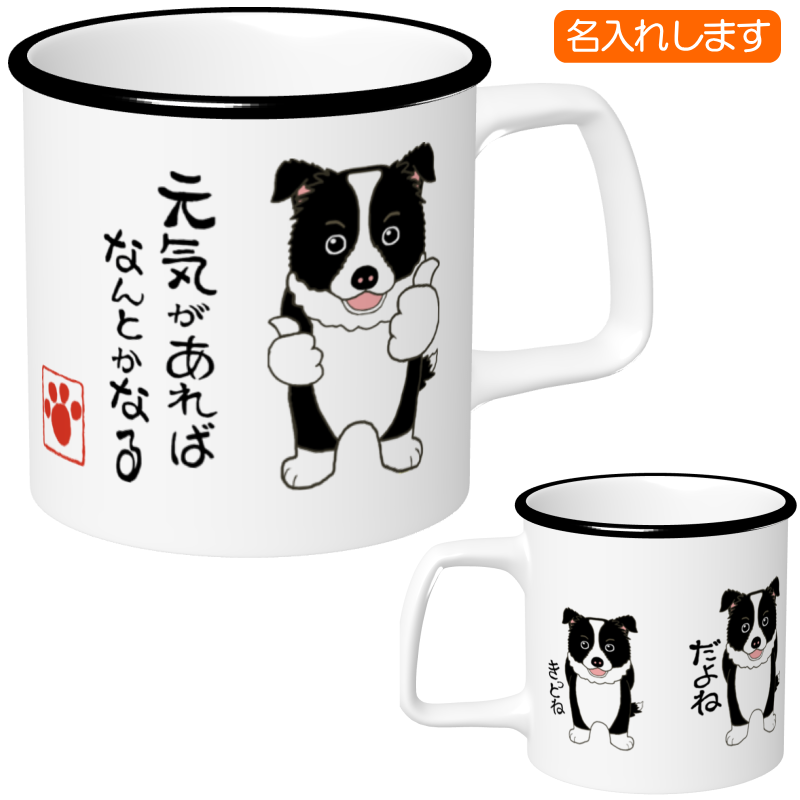 ボーダーコリーB=名入れメッセージ入れ 元気があれば マグカップ2=