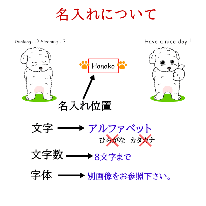 ◆名入れ位置:Tシャツ前面の犬柄と犬柄の間