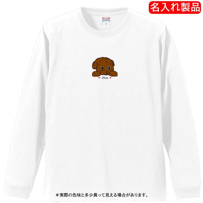 トイプードルB =名入れ・Tシャツ・長袖・白・リブ付き・3サイズ・202404=
